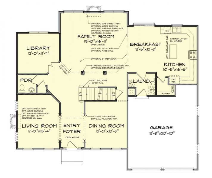 This 2,950 square foot custom home floor plan is a customer favorite. The Lauren boasts a two-story family room and foyer for a big impression in a smaller-sized space. The size is just right for many homeowners, but can easily be modified through adding a morning room, family room extension, or in-law suite extension. If you’re looking for five bedrooms instead of four, the family room area can be closed off to make additional room. The kitchen area is perfect for entertaining and the library area is ideal for a home office or playroom for the kids.